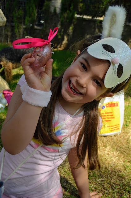 El juego....muy sencillo trataba de coger un huevo y romperlo encima de la cabeza para que el pelo te quede de mil colores, como en la foto, fue super divertido!!